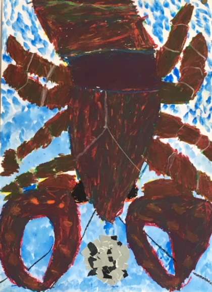 どの絵も画用紙いっぱいに描かれて大迫力。パスで様々な色を丁寧に重ねて塗り本物のザリガニのような色を作ることができていました。