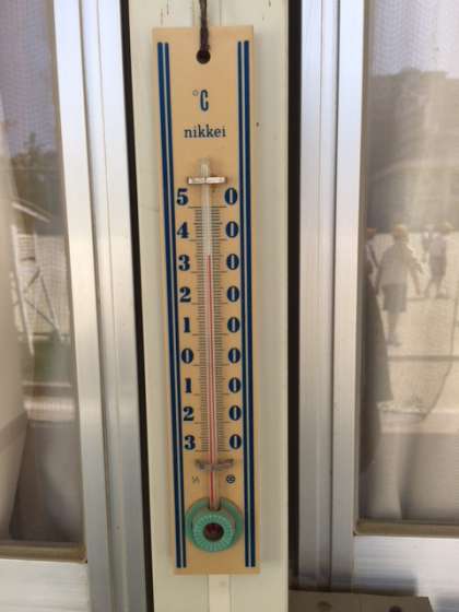 猛暑日が続いています。1時間目の休み時間(9:30)の時点で温度計は35度でした。