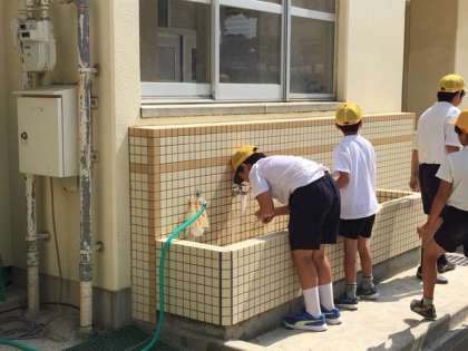 熱中症対策として、子どもたちには「帽子をかぶること」と「こまめに給水すること」を指導しています。