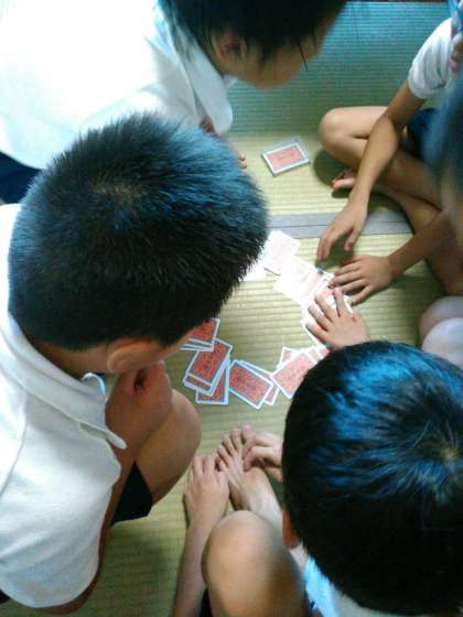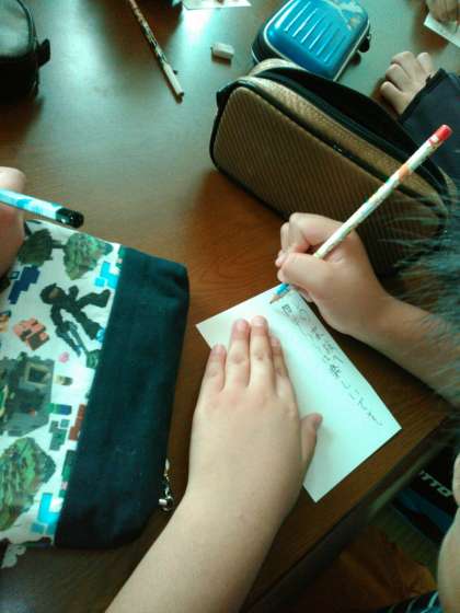 宿舎に戻り、順番に入浴です。待っている間、部屋ではがきを書いたり、トランプで遊んだり、自由に過ごしています。もうすぐ夕食の時間です。