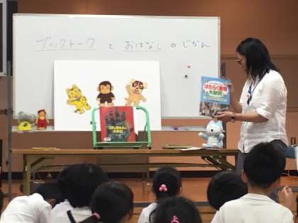 3年生には動物の本の紹介がありました。『これがほんとの大きさ』という絵本には本物の大きさのゴリラの手が書かれていて子どもたちもびっくり!!そのほかに働く動物の本などを紹介していただき『ゆうたくんちのいばりいぬ』の読み聞かせをしていただきました。