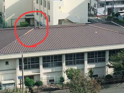 先日の台風21号の影響で、講堂の屋根の一部が飛ばされ破損しました。