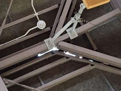 そのため、講堂の天井に亀裂があり、そこから空が見える状態になっております。