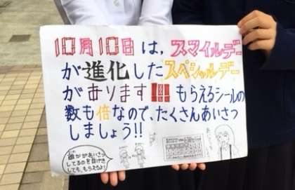 毎月6・8・10日はすみれスマイルデーです。今月はスマイルデーが10日しかないので今日をスペシャルスマイルデーとして児童会が企画しました。