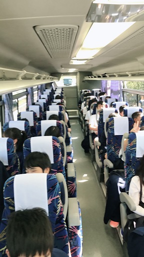 バスの中では平和集会で歌う歌の練習をしたり友だちと話したりと楽しく過ごしています。
