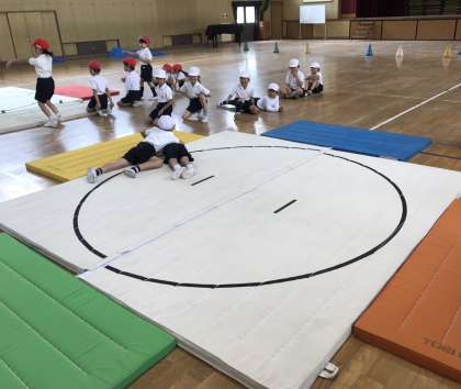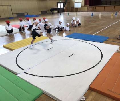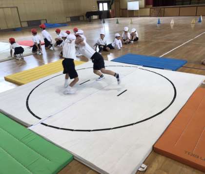 1年生が体育で相撲に取り組んでいました。
