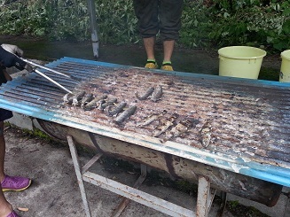 なかなかつかめませんでしたが、苦労してとった魚を焼いてもらうと、