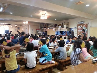 宿舎に到着後、避難訓練を終えると、最初のプログラムは魚つかみ。