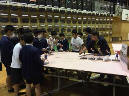 頑張って作った作品を大事そうに抱えて作品台の上においていました。