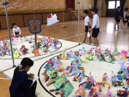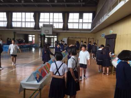 今日は児童が鑑賞しました。他の学年の作品を見ながらよいところをたくさん見つけることができていました。