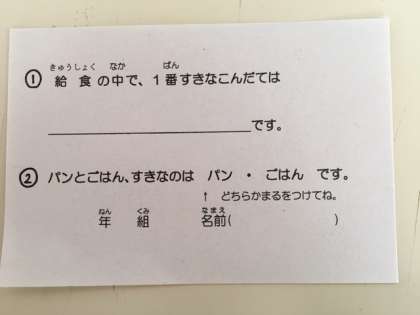アンケートは「すきな給食のこんだて」と「パンとご飯のどちらがすきか」の2項目です。
