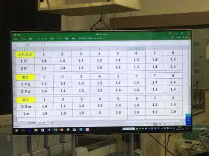 実験の結果は大型テレビに写してみんなが見やすく提示しその結果を見ながら班のみんなでしっかり話し合うことができていました。