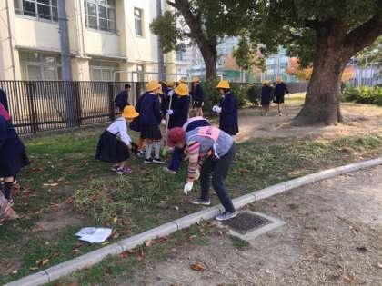 4年生が2時間目に地域の女性会の方と古市中公園を掃除しました。