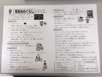 反省では集合時間を守ることや、正しい歩き方をするなどの反省が出ていました。そのあと、本日配付した「冬休みのくらし」を読みながら冬休みを安全で健康に過ごせるようにすることを確認しました。