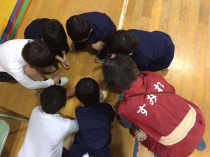 1・2年生が老人会の方に伝承遊びを教えてもらいました。