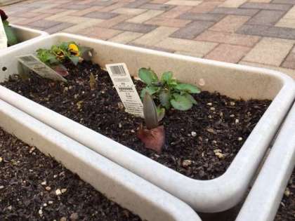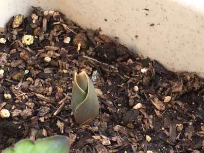 寒い日が続きますが、秋に1年生が植えたチューリップが芽を出していました。