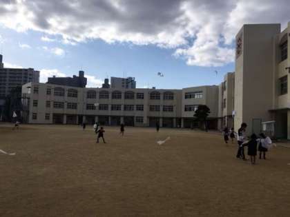 風があまり強くなかったので運動場を走り回って高く上がるように頑張っていました。