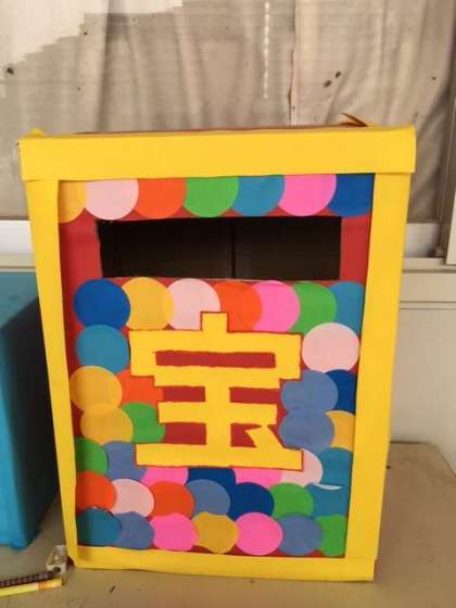 職員室前にすみれスマイル宝箱と給食調理員さんへのメッセージを入れる箱が置いてあります。