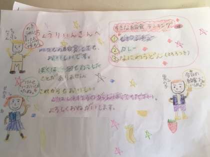 すみれスマイル宝箱、給食調理員さんへメッセージ