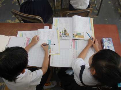 道徳の授業でたくさんの意見が交わされていました。自分はこう思ったと伝え合う活動は1年生から続けることで、高学年で意見を自分たちで交流できるようになります。これからも自分の意見をもち、たくさん伝え合ってほしいと思います。なんといっても楽しそうなのが何よりです。