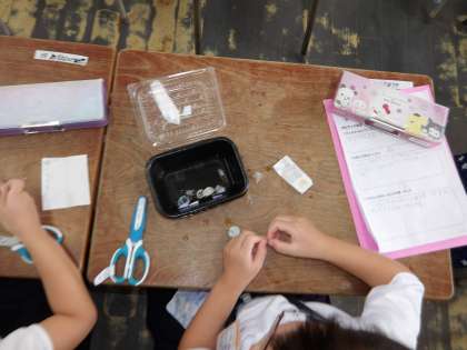 生活で作ったおもちゃをよりよいものにするために設計していました。道具や材料を工夫しながら考える姿は1年生よりもすこしお兄さんお姉さんになったように感じます。これからの生活では、生活をより良いものにするためにどうすればよいのかという視点に立って、たくさん考えてほしいと思います。
