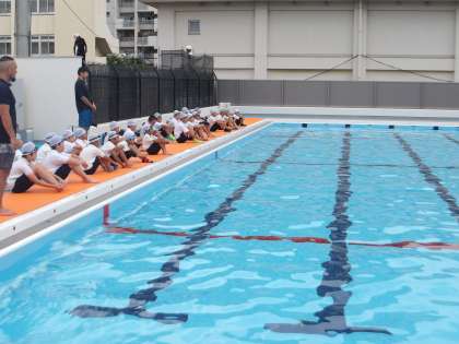 今日は4年生の着衣泳が行われました。服を着た状態で泳ぐことの困難さや、助けが来るまでの数分間をいかに浮いていられるかなど、学ぶことの多い1時間でした。溺れる側でなくとも、それを助ける場面に出くわすことも考えられます。焦らず、自らの命を守りながら何ができるのかを考えることができました。
