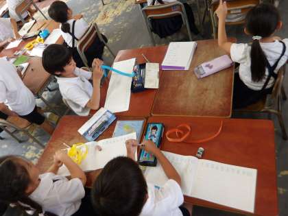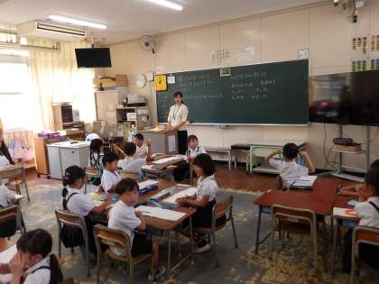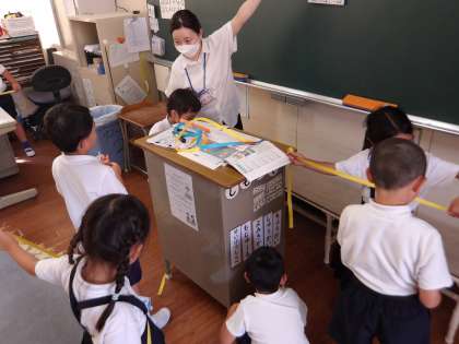 1年生は算数で「大きさ比べ」しました。具体的なテープを使って長さをはかり取り、比べていました。楽しそうに活動で来てとてもよかったです。