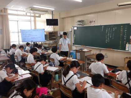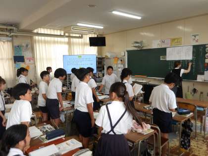 5年生は国語で「こころの動きを短歌で表そう」をしました。辞書を片手に班で相談したり、自分で言葉を調べたりと、普段使い慣れない表現方法を用いて短歌を完成させていました。努力の甲斐あってすばらしい学習になったと思います。