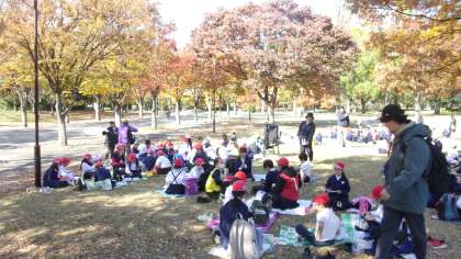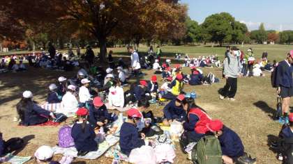 たてわり遠足では、みんなでお弁当を食べました。たてわり班で食べましたが、にぎやかに楽しそうな声が響き渡っていました。