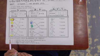 1年生の栄養授業がありました。食べ物の大切さやその役割などについてわかりやすく教えていただきました。笑いが起こる場面もあり、楽しそうに学習していました。