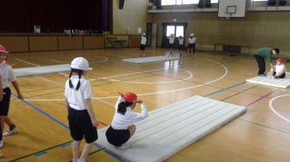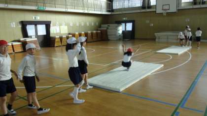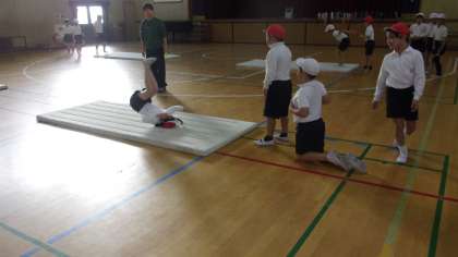 体育でマット運動をしました。マットでは手の付き方、頭の入れ方など体の使い方ひとつで、上手にできたり、できなかったりします。今日はしっかりとコツを掴んている児童が多くみられました。