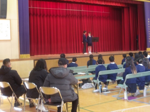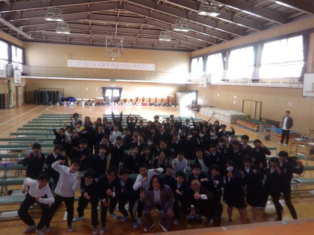 吉本興業の芸人の方に来ていただき、漫才を教えてもらいました。台本と向き合い、練習を重ねました。4時間目5時間目での発表は本当に素晴らしい面白い漫才になっていました。緊張したと思いますが、本当に最後までよく頑張ることができました。