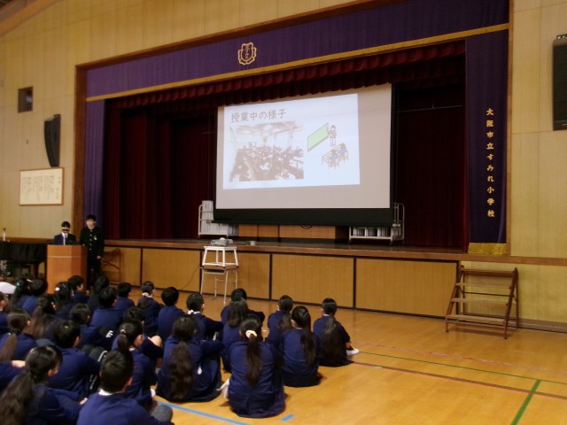 中学生の生徒会の皆さんがきてくれて、中学校での生活をわかりやすく、クイズやイラストを用いてしっかり説明してくれました。