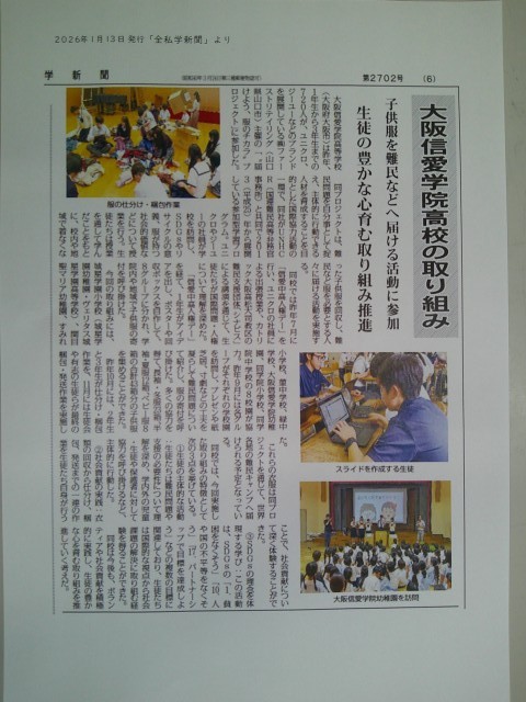 信愛高等学校と協力し、使用済みの服の再利用に取り組みました。寄付していただいた方々には深く感謝申し上げます。世界中でその服が再利用され、子どもたちの笑顔につながっていくものと思います。ありがとうございました。