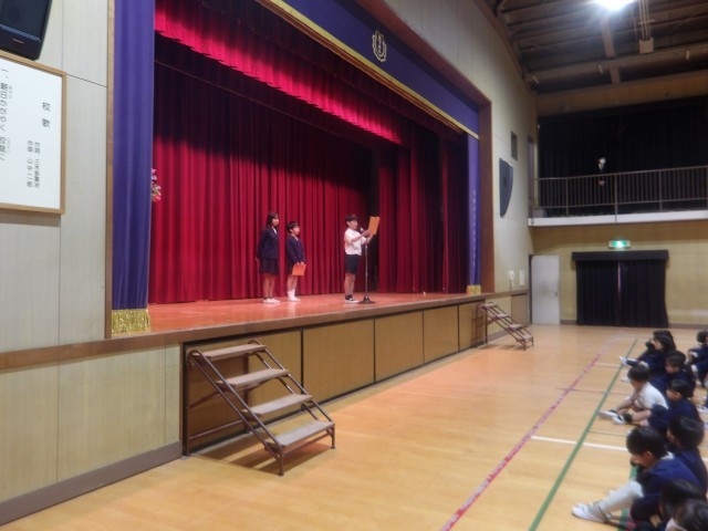 令和8年度1学期始業式を行いました。3名の新6年生が堂々と新学年での抱負を述べることができていました。また、校長先生の話や生活指導の話をしっかり聞こうとする子どもたちの姿も見られました。保護者のみなさま、一年間どうぞよろしくお願いいたします。