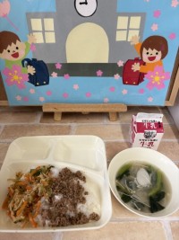 ●カツカレーライス●フルーツゼリー●牛乳今日のカレーライスには花型や星型のにんじ...