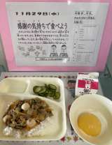 11月30日(木)の給食は、 ・さごしのごまじょうゆかけ ・うすくず汁 ・大豆の...