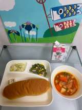 ●マカロニグラタン ●キャベツのスープ ●みかん缶詰 ●黒糖パン ●牛乳 米粉...