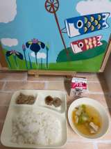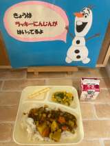 ●牛肉と大豆のカレーライス ●レタスとコーンのサラダ ●棒チーズ ●牛乳