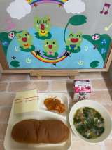 ●えびのチリソース ●中華スープ ●スライスチーズ ●黒糖パン ●牛乳 「えび...