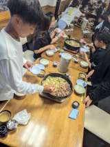 林間学校最後の晩御飯はすき焼きでした。 みんなでお鍋を囲んで食べました。
