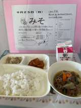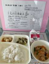 9月27日(水)の給食は ・一口がんもとさといものみそ煮 ・牛肉と野菜のいためも...