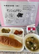 9月26日の給食は、 ・ヤンニョムチキン ・とうふのスープ ・切干しだいこんのナ...