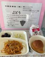 9月28日(木)の給食は、 ・イタリアンスパゲッティ ・キャベツのバジル風味サラ...