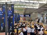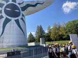 万博記念公園に到着しました。太陽の塔を見て歓声をあげていました。
