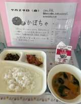9月29日(金)の給食は ・鶏肉のてり焼き ・かぼちゃのみそ汁 ・なすのそぼろい...