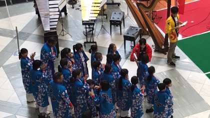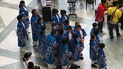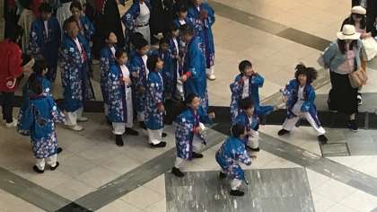 ツイン21 の会場にて、めっちゃハピ祭が開催され、チームさくらが出場しました。子どもたちは、いつも通り、元気に生き生きしたよさこいソーランを披露していました。