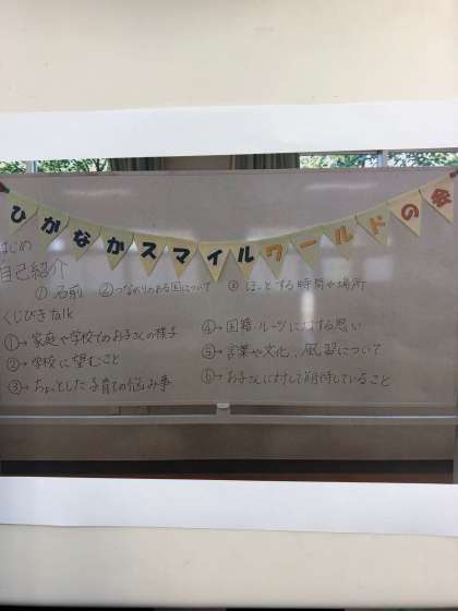 土曜授業のあと、本校に在籍する外国籍または外国にルーツのある児童の保護者の皆様の集まりをしました。そこでは、つながりのあるくにのことや国籍・ルーツな対する思いなどの話などをしていただきました。和やかな雰囲気のなか、ざっくばらんに話し合うことができました。また、2学期、11月19日に第2回目の会を予定しています。多くの皆様のご参加をお待ちしています。