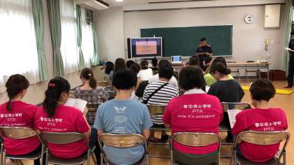 本日、城東消防署員の方に来ていただき、PTA主催の救急救命講習を行いました。