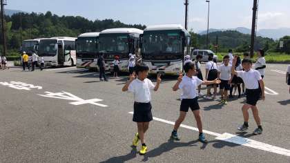 9時45分、まほろば道の駅にてトイレ休憩をとりました。あとは、ハチ高原へ直行です。子どもたちは、バス酔いの子が少しいますが、皆んな元気です。